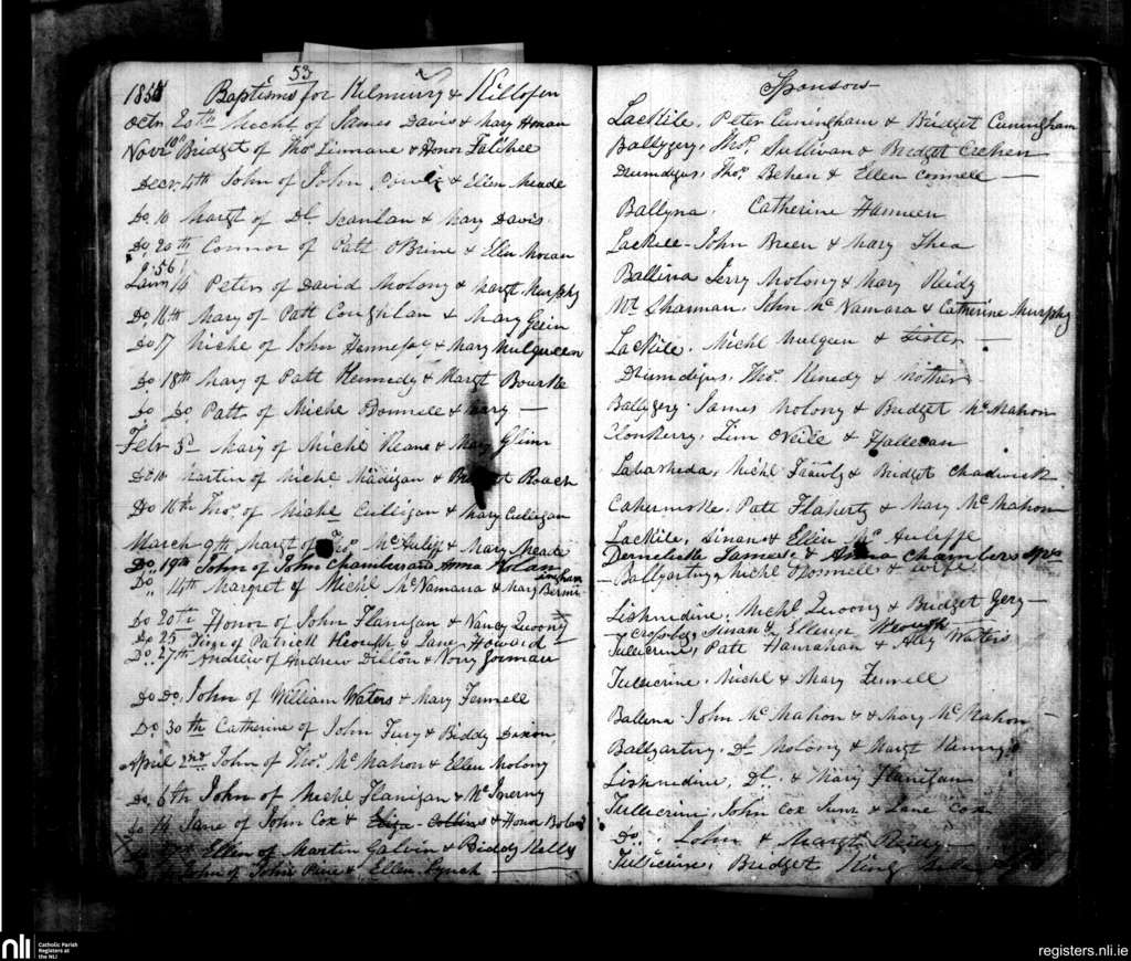 Kilmurry McMahon; County of Clare; Diocese of Killaloe. Baptisms, Oct. 1855 to Apr. 1856
