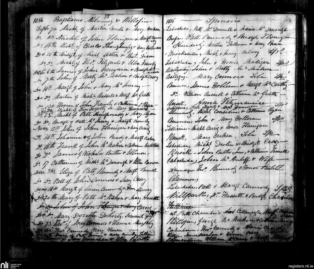 Kilmurry McMahon; County of Clare; Diocese of Killaloe. Baptisms, Sep. 1856 to Dec. 1856