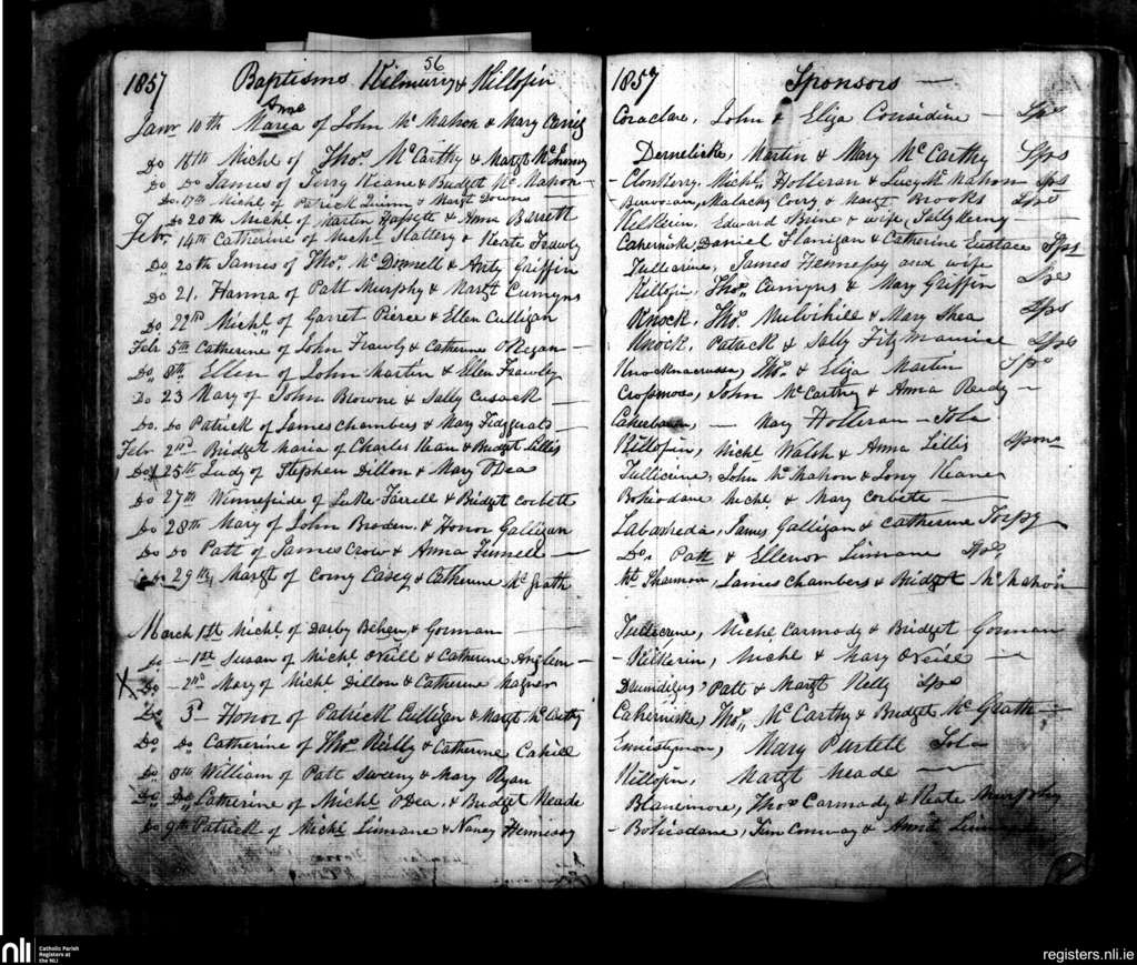 Kilmurry McMahon; County of Clare; Diocese of Killaloe. Baptisms, Jan. 1857 to Mar. 1857