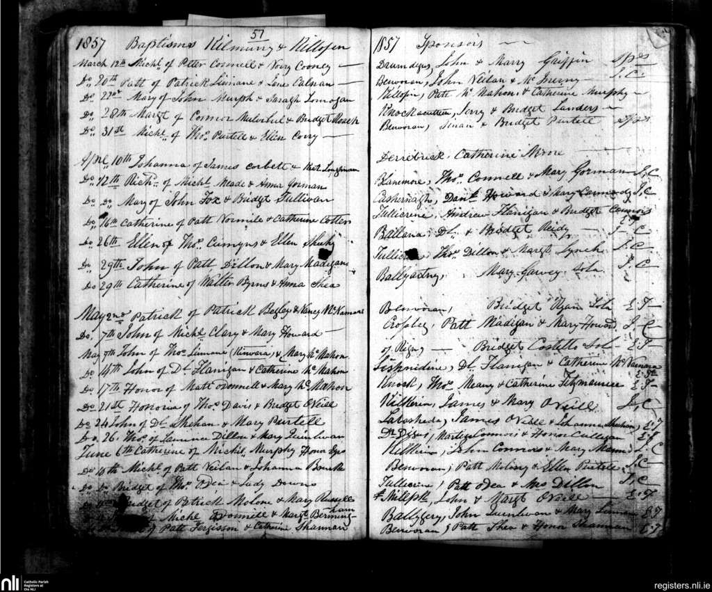 Kilmurry McMahon; County of Clare; Diocese of Killaloe. Baptisms, Mar. 1857 to June 1857