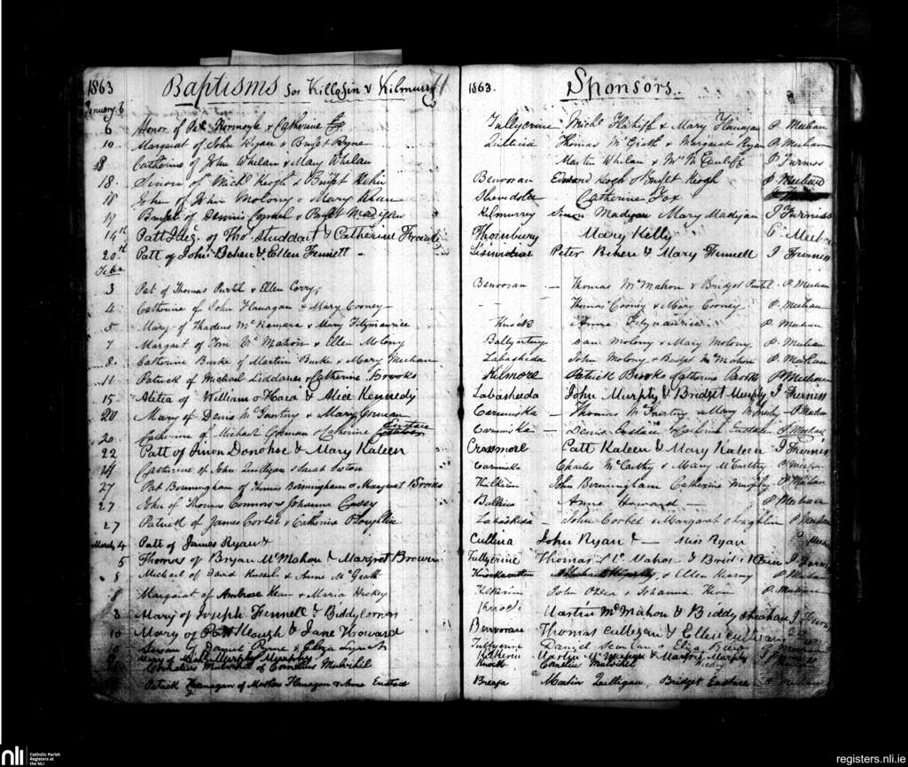 Kilmurry McMahon; County of Clare; Diocese of Killaloe. Baptisms, Jan. 1863 to Mar. 1863