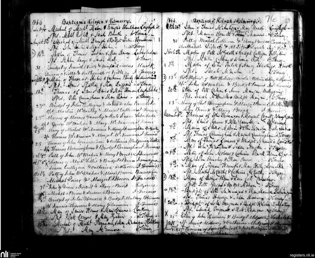 Kilmurry McMahon; County of Clare; Diocese of Killaloe. Baptisms, July 1864 to Jan. 1865