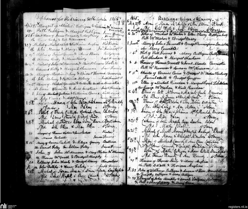 Kilmurry McMahon; County of Clare; Diocese of Killaloe. Baptisms, Apr. 1865 to June 1865