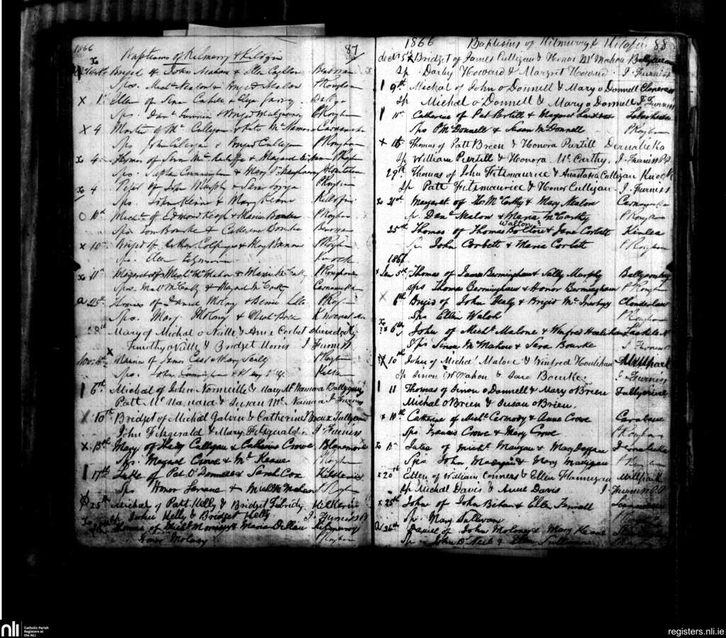 Kilmurry McMahon; County of Clare; Diocese of Killaloe. Baptisms, Oct. 1866 to Jan. 1867