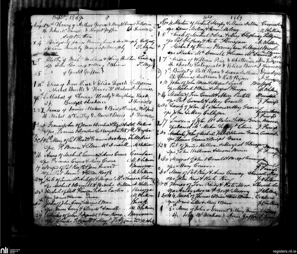 Kilmurry McMahon; County of Clare; Diocese of Killaloe. Baptisms, Aug. 1869 to Dec. 1869