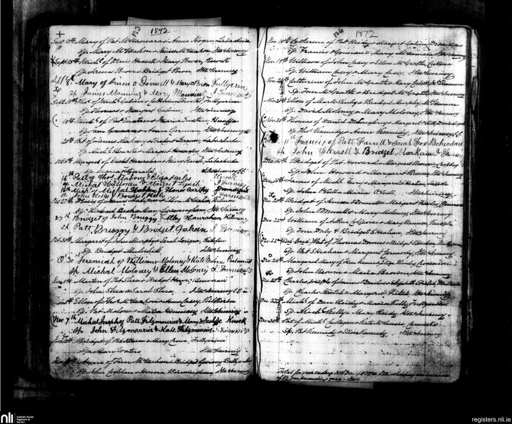 Kilmurry McMahon; County of Clare; Diocese of Killaloe. Baptisms, Sep. 1872 to Dec. 1872