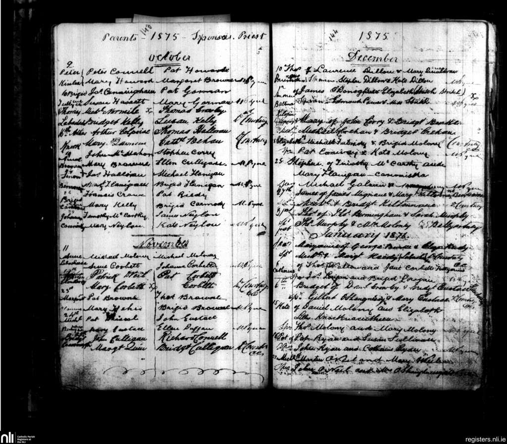 Kilmurry McMahon; County of Clare; Diocese of Killaloe. Baptisms, Oct. 1875 to Jan. 1876