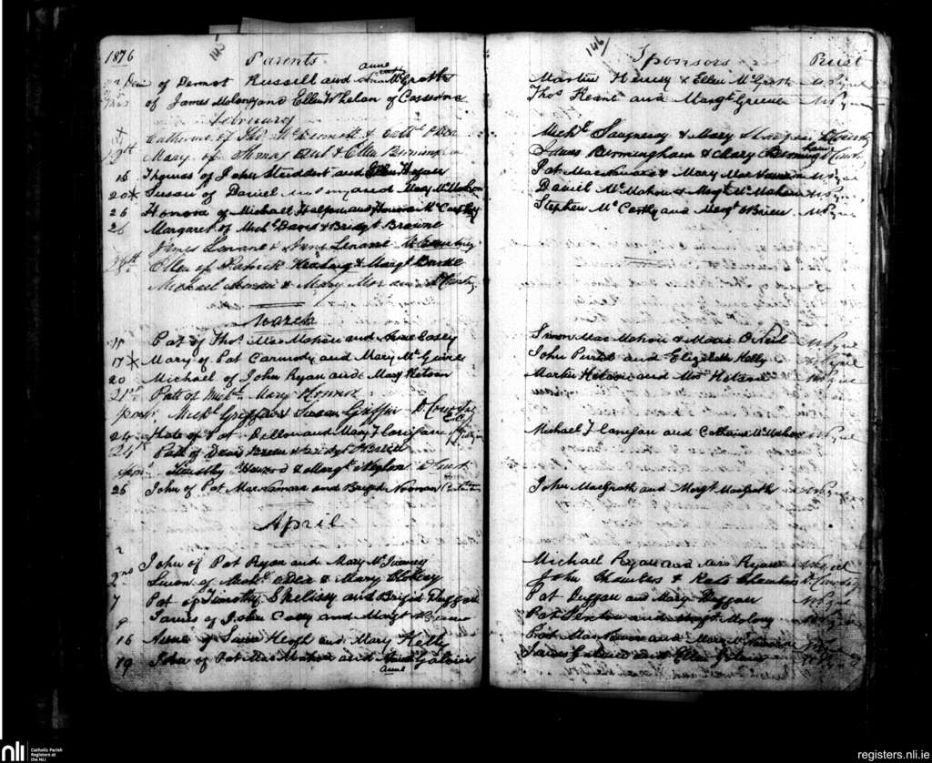 Kilmurry McMahon; County of Clare; Diocese of Killaloe. Baptisms, Jan. 1876 to Apr. 1876