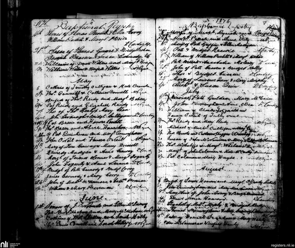 Kilmurry McMahon; County of Clare; Diocese of Killaloe. Baptisms, Apr. 1876 to Aug. 1876