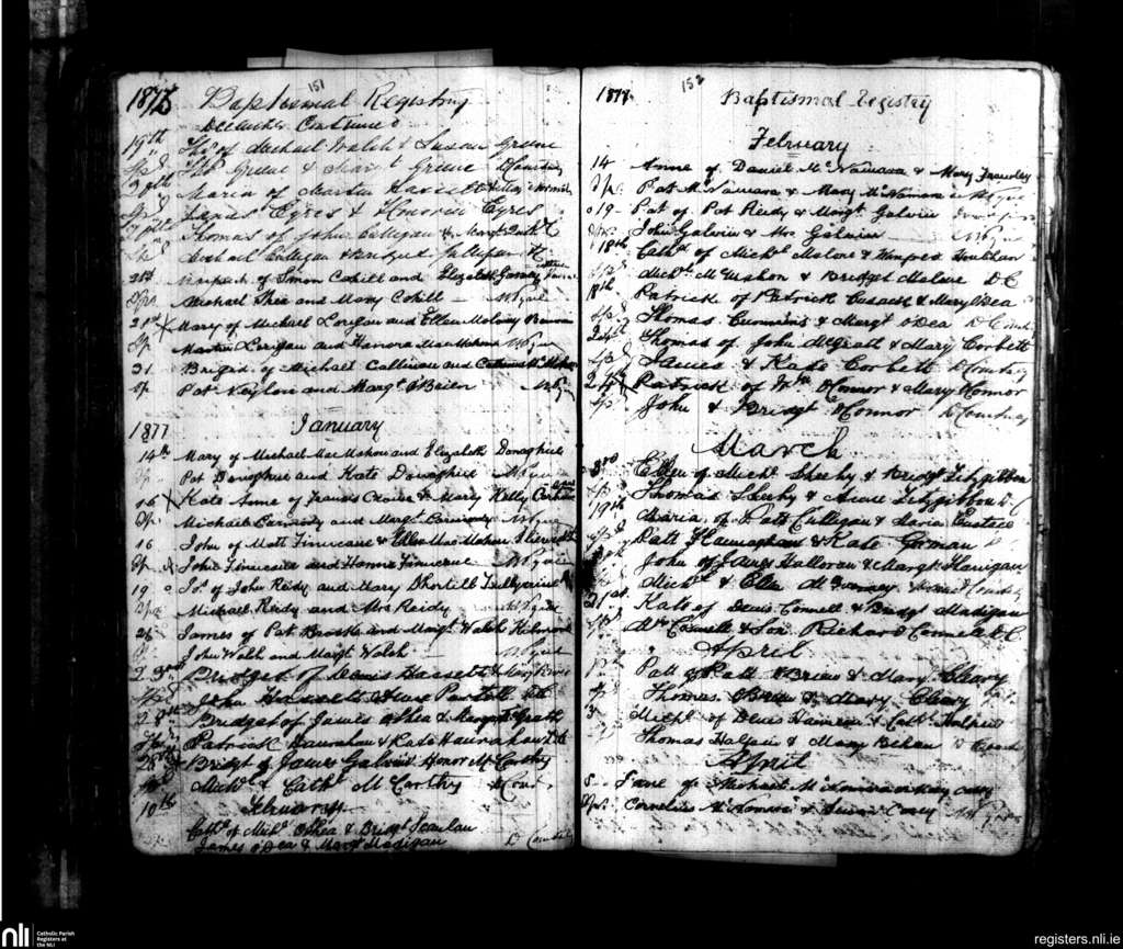 Kilmurry McMahon; County of Clare; Diocese of Killaloe. Baptisms, Dec. 1876 to Apr. 1877