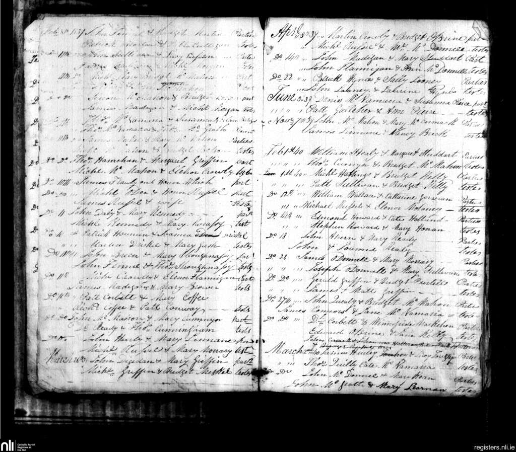Kilmurry McMahon; County of Clare; Diocese of Killaloe. Marriages, Feb. 1839 to Mar. 1840
