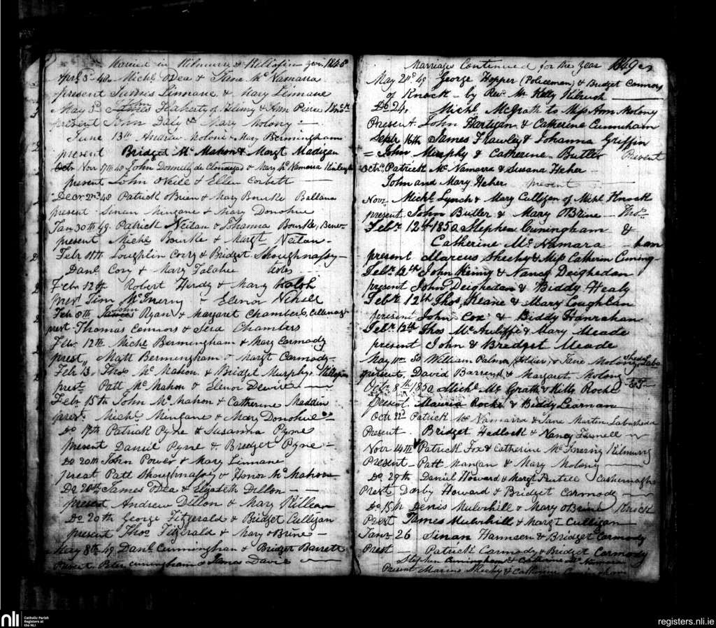Kilmurry McMahon; County of Clare; Diocese of Killaloe. Marriages, Apr. 1848 to Jan. 1851