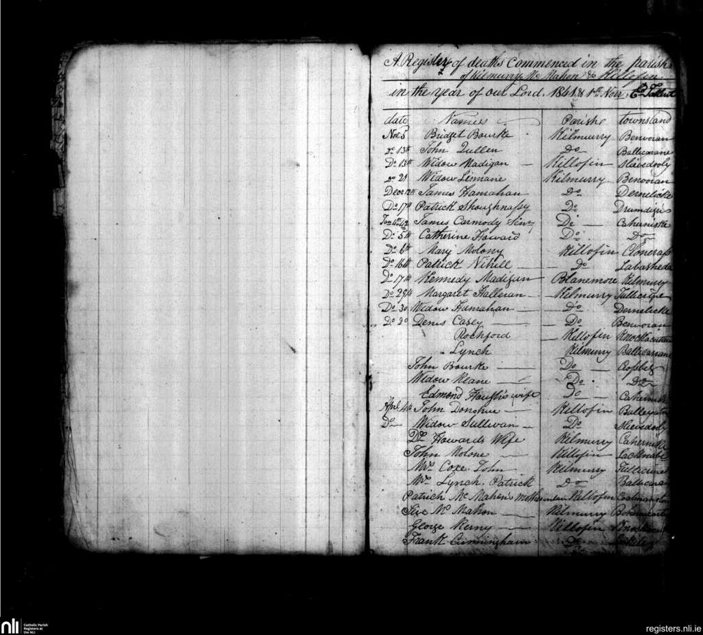 Kilmurry McMahon; County of Clare; Diocese of Killaloe. Deaths, Nov. 1841 to Apr. 1842