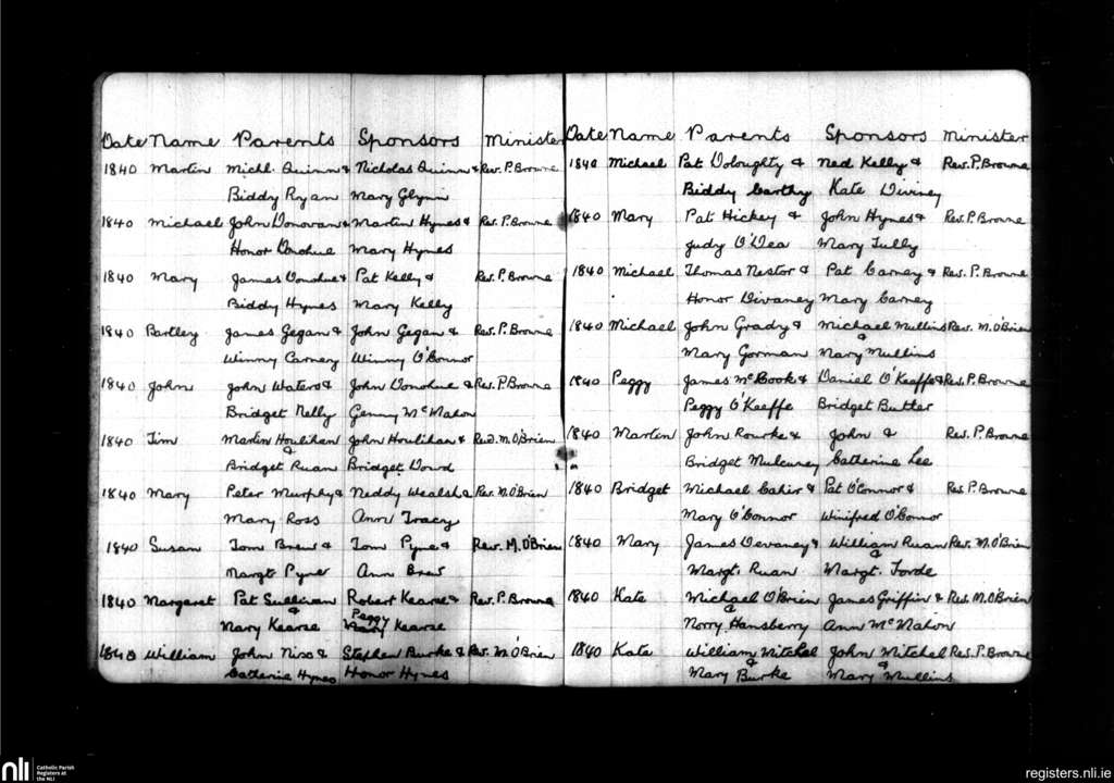 Killkeady; County of Clare; Diocese of Killaloe. Baptisms, Translation missing: en.month_abv_0 1840