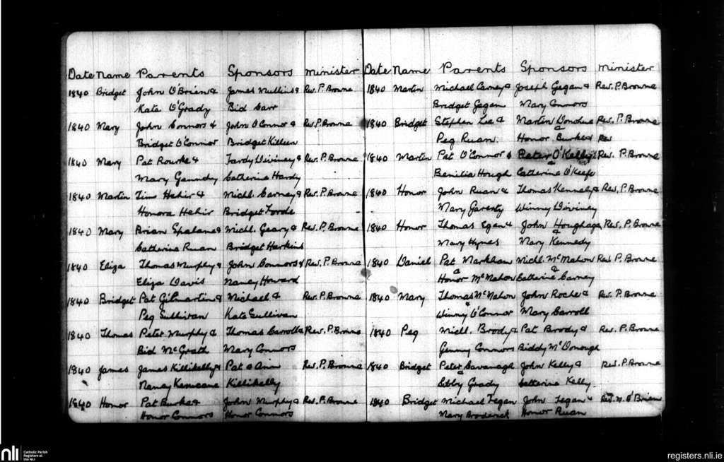 Killkeady; County of Clare; Diocese of Killaloe. Baptisms, Translation missing: en.month_abv_0 1840