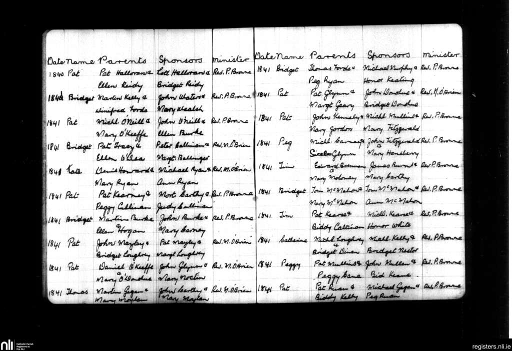 Killkeady; County of Clare; Diocese of Killaloe. Baptisms, Translation missing: en.month_abv_0 1840 to Translation missing: en.month_abv_0 1841