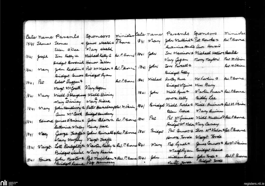 Killkeady; County of Clare; Diocese of Killaloe. Baptisms, Translation missing: en.month_abv_0 1841