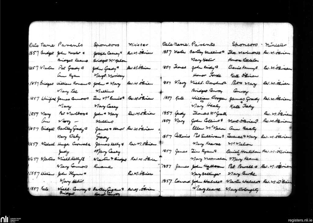Killkeady; County of Clare; Diocese of Killaloe. Baptisms, Translation missing: en.month_abv_0 1857