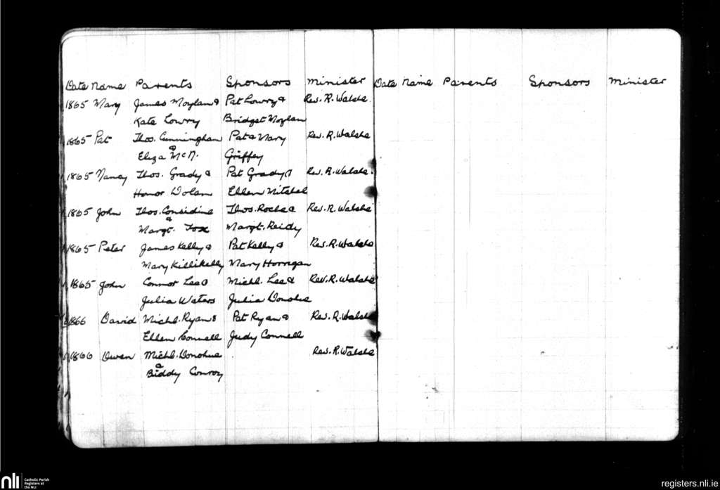 Killkeady; County of Clare; Diocese of Killaloe. Baptisms, Translation missing: en.month_abv_0 1865 to Translation missing: en.month_abv_0 1866