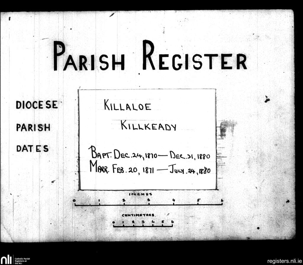Killkeady; County of Clare; Diocese of Killaloe. Baptisms, Marriages