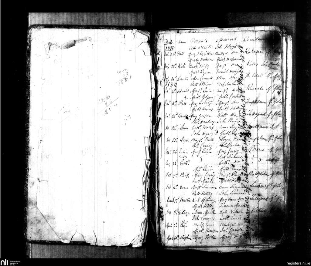 Killkeady; County of Clare; Diocese of Killaloe. Baptisms, Dec. 1870 to Mar. 1871