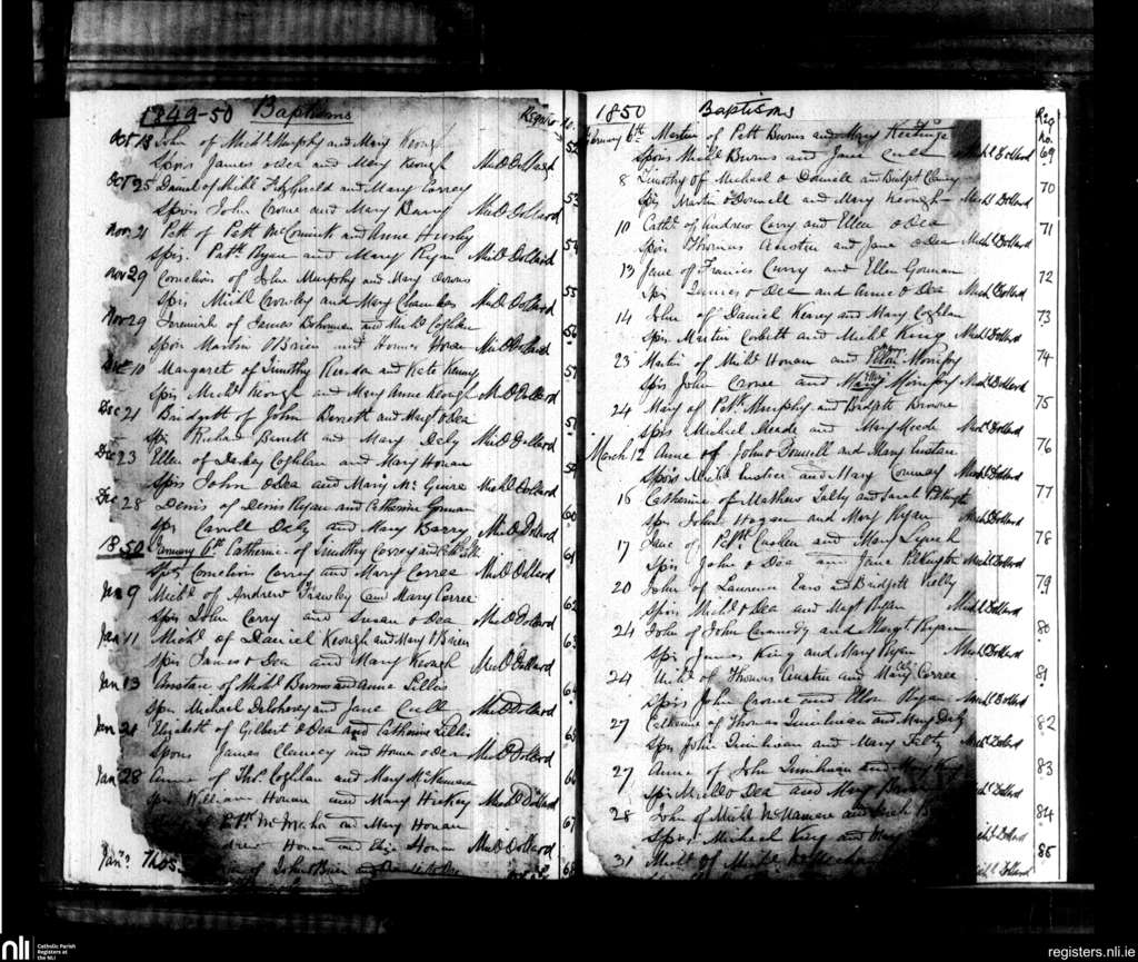 Kilmihil; County of Clare; Diocese of Killaloe. Baptisms, Oct. 1849 to Mar. 1850