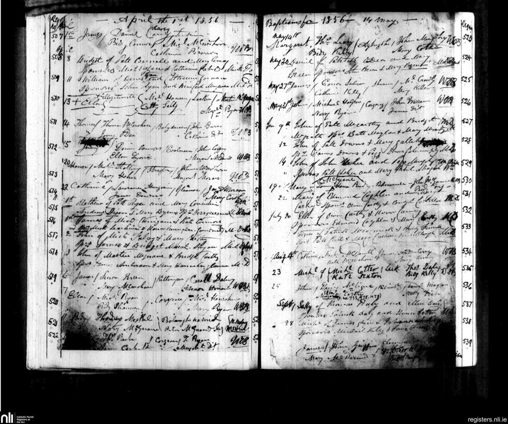 Kilmihil; County of Clare; Diocese of Killaloe. Baptisms, Apr. 1856 to Sep. 1856
