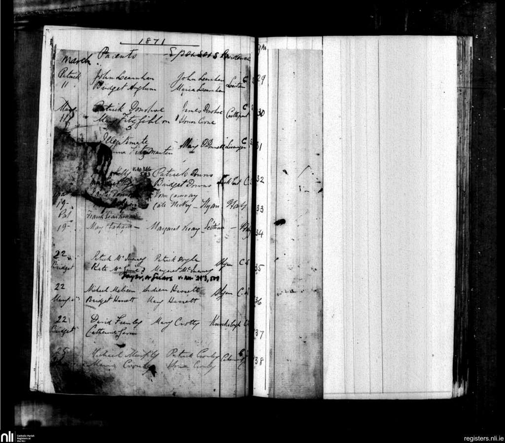 Kilmihil; County of Clare; Diocese of Killaloe. Baptisms, Mar. 1871 to May 1871