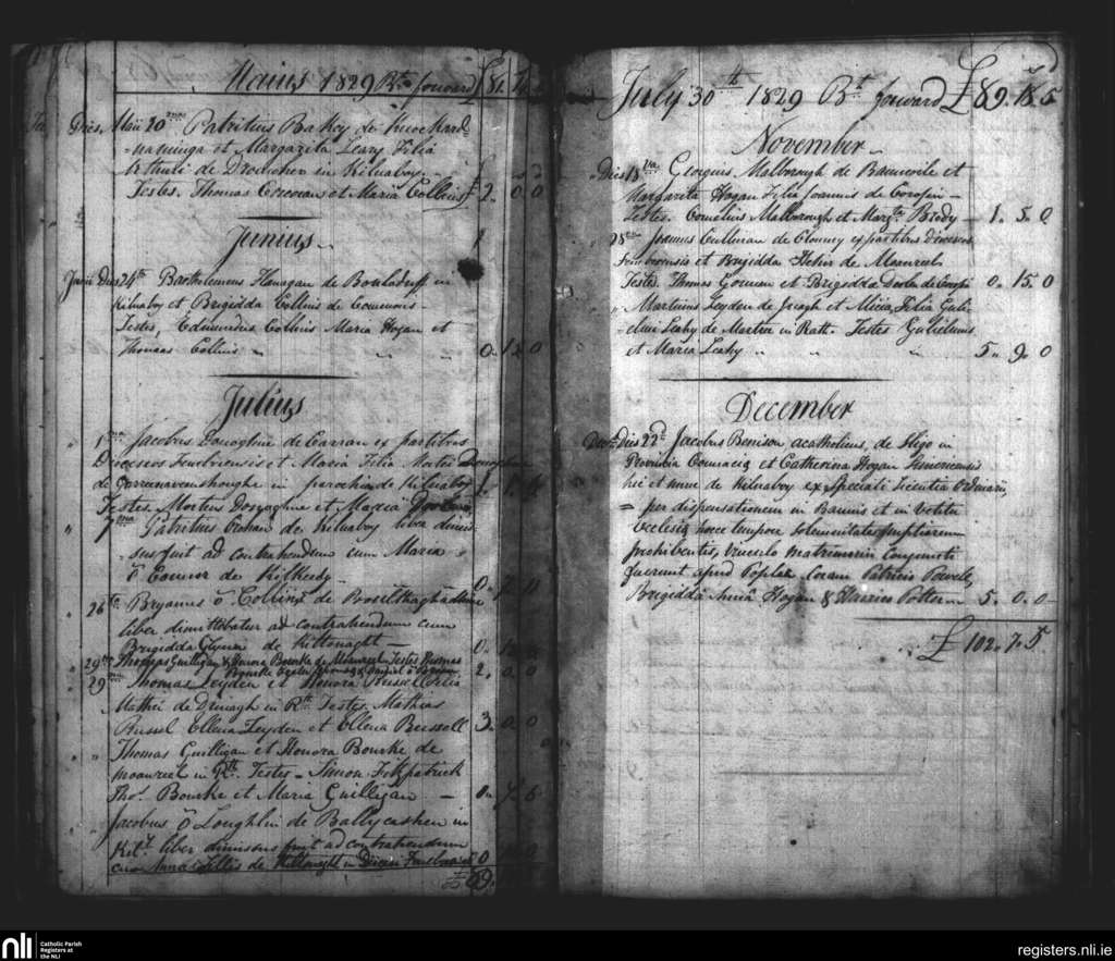 Rath; County of Clare; Diocese of Killaloe. Marriages, May 1829 to Dec. 1829