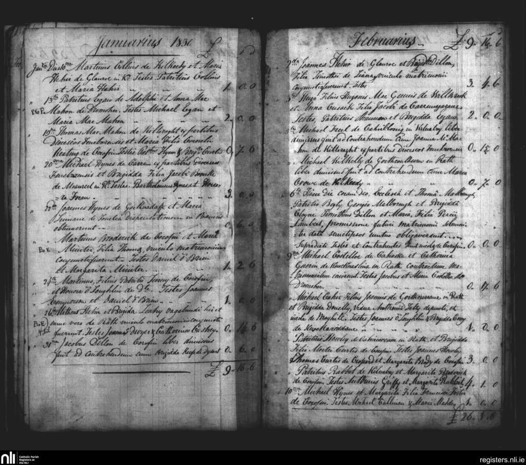 Rath; County of Clare; Diocese of Killaloe. Marriages, Jan. 1830 to Feb. 1830