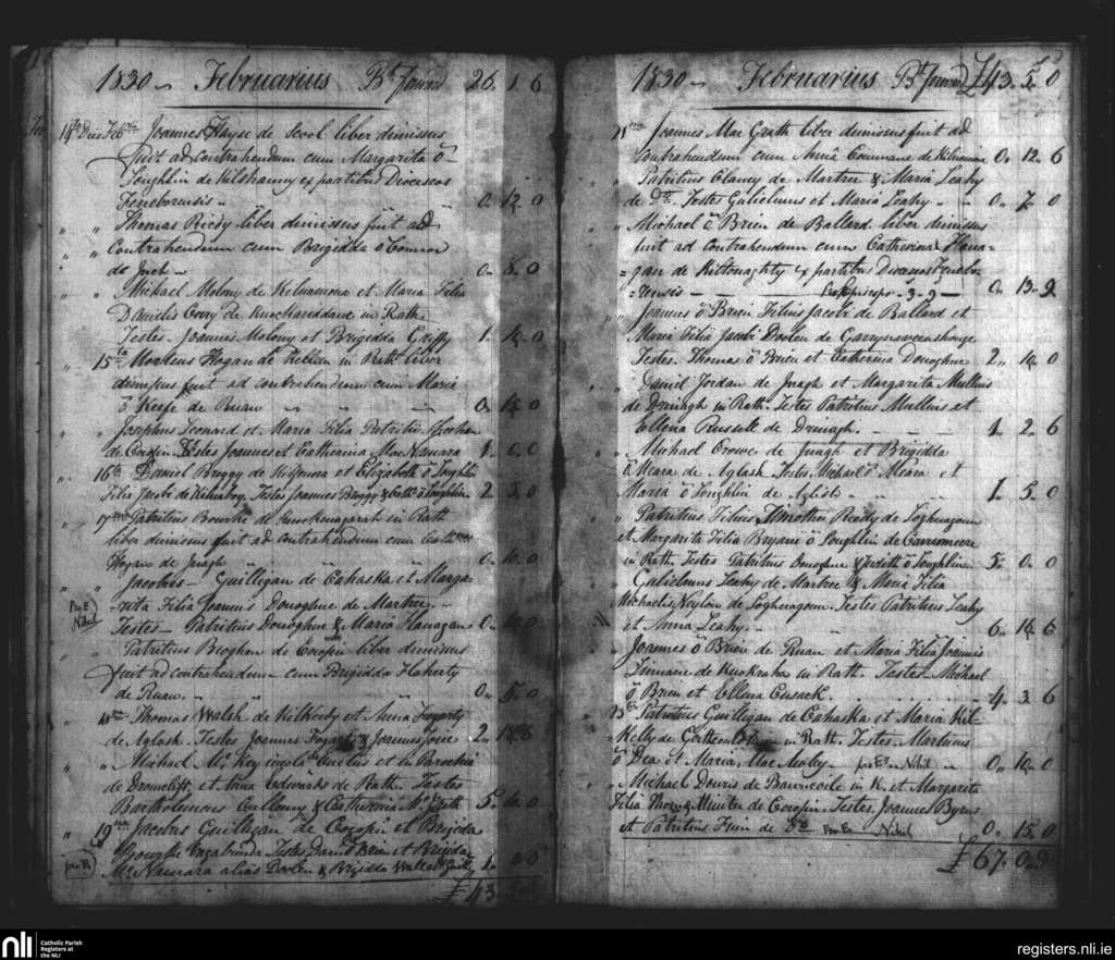 Rath; County of Clare; Diocese of Killaloe. Marriages, Feb. 1830