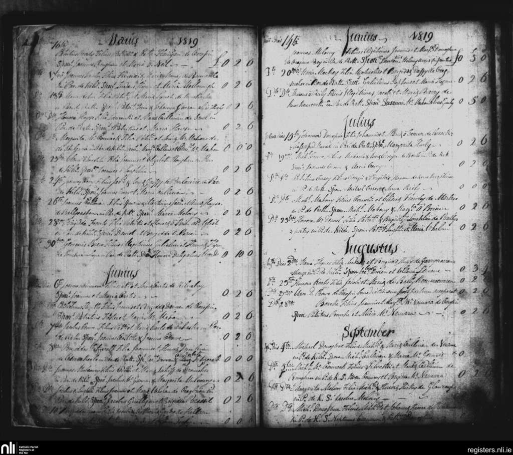 Rath; County of Clare; Diocese of Killaloe. Baptisms, May 1819 to Sep. 1819