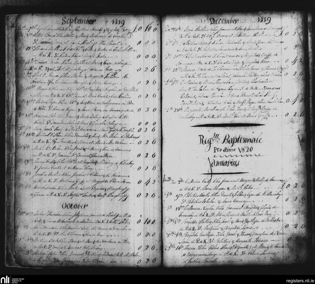 Rath; County of Clare; Diocese of Killaloe. Baptisms, Sep. 1819 to Jan. 1820