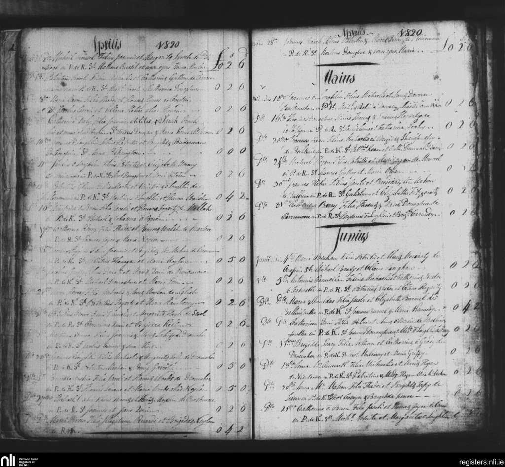 Rath; County of Clare; Diocese of Killaloe. Baptisms, Apr. 1820 to June 1820