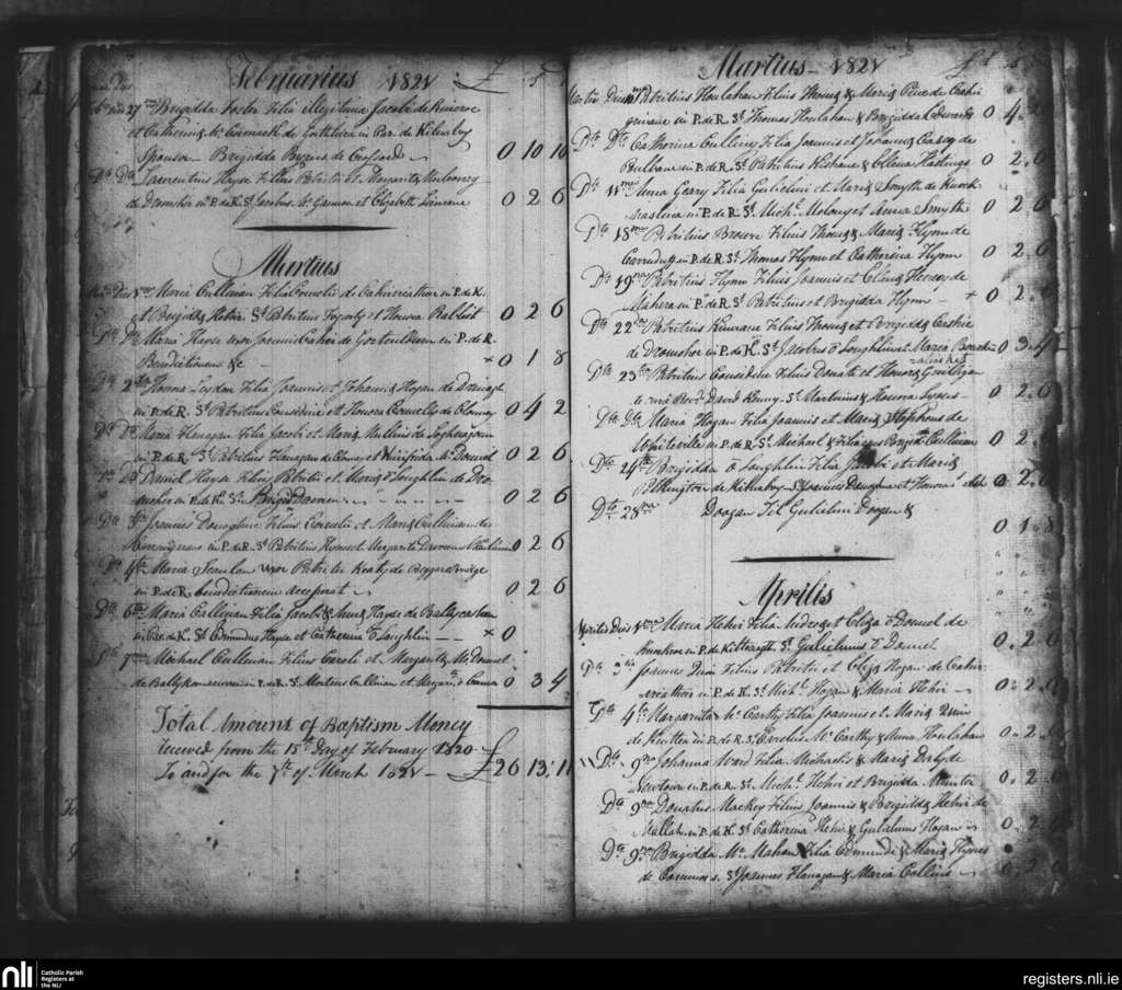 Rath; County of Clare; Diocese of Killaloe. Baptisms, Feb. 1821 to Apr. 1821