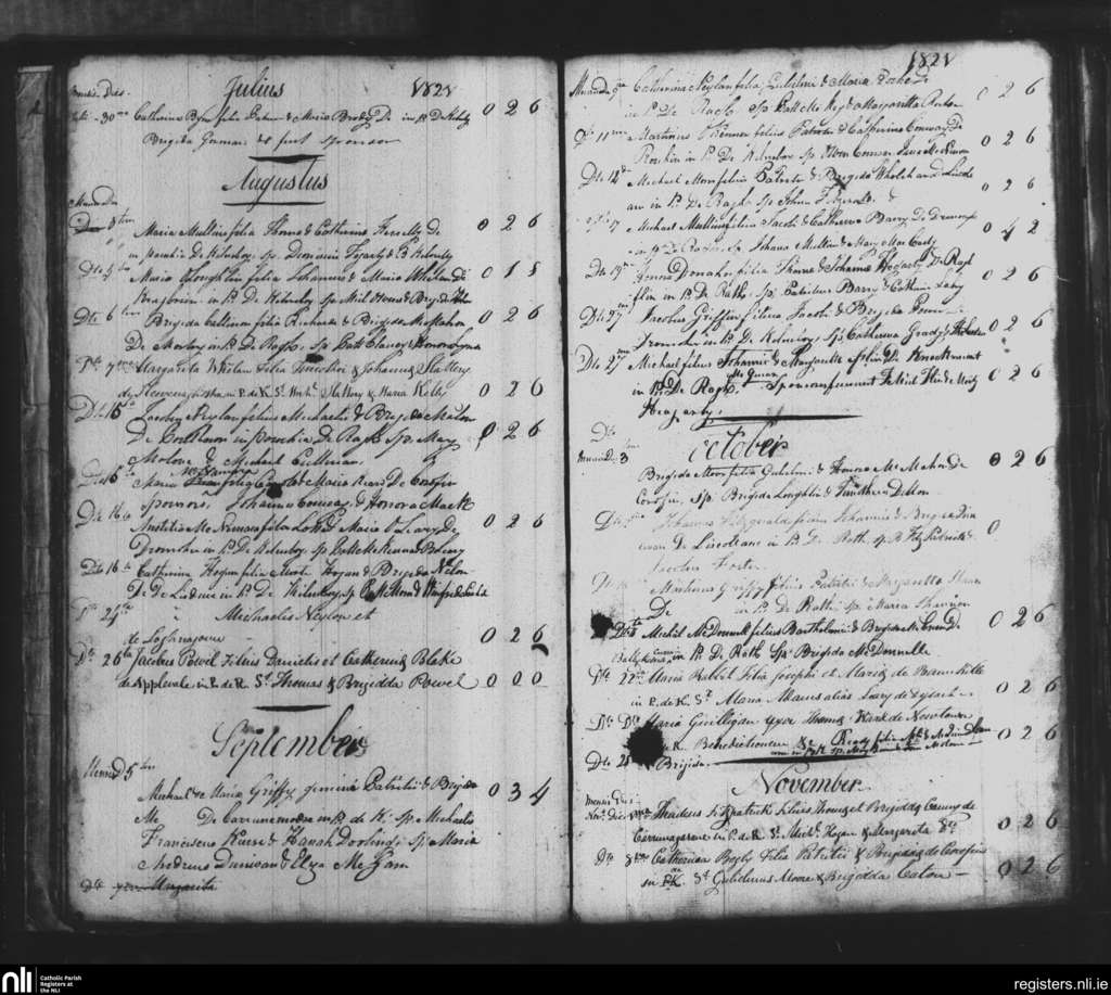Rath; County of Clare; Diocese of Killaloe. Baptisms, July 1821 to Nov. 1821