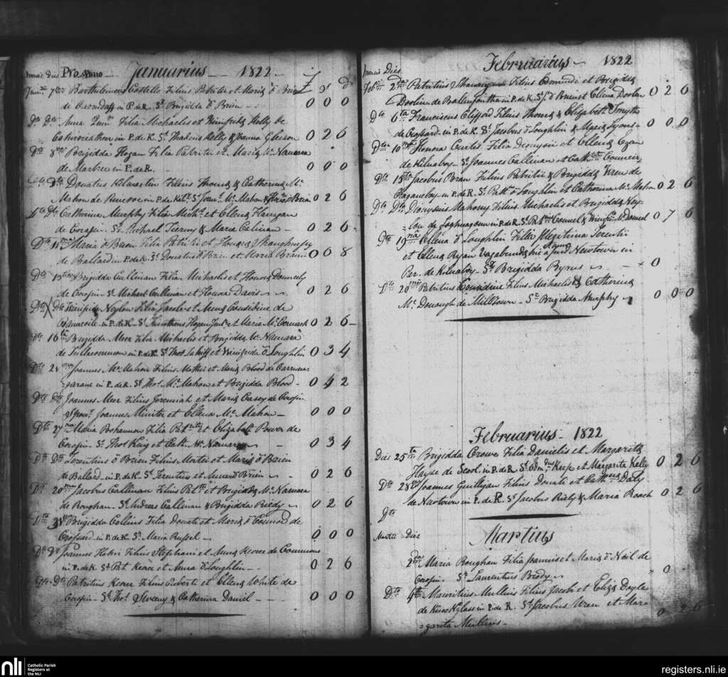 Rath; County of Clare; Diocese of Killaloe. Baptisms, Jan. 1822 to Mar. 1822