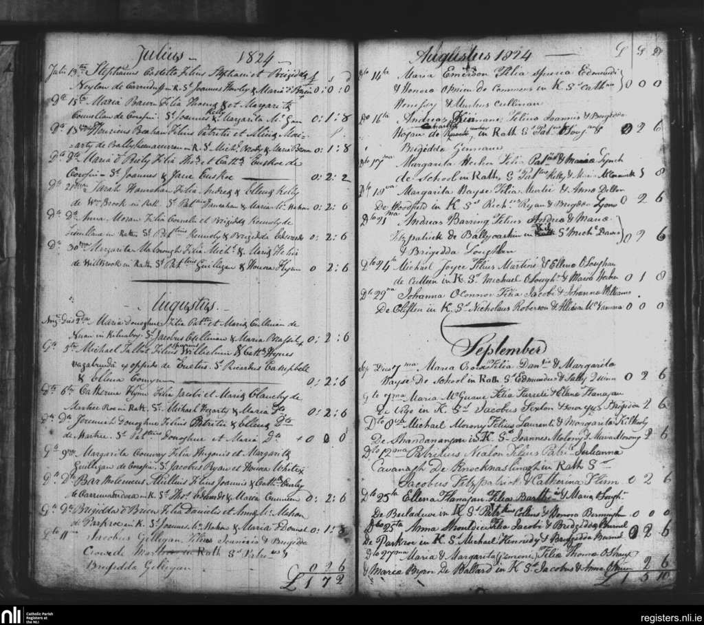 Rath; County of Clare; Diocese of Killaloe. Baptisms, July 1824 to Sep. 1824
