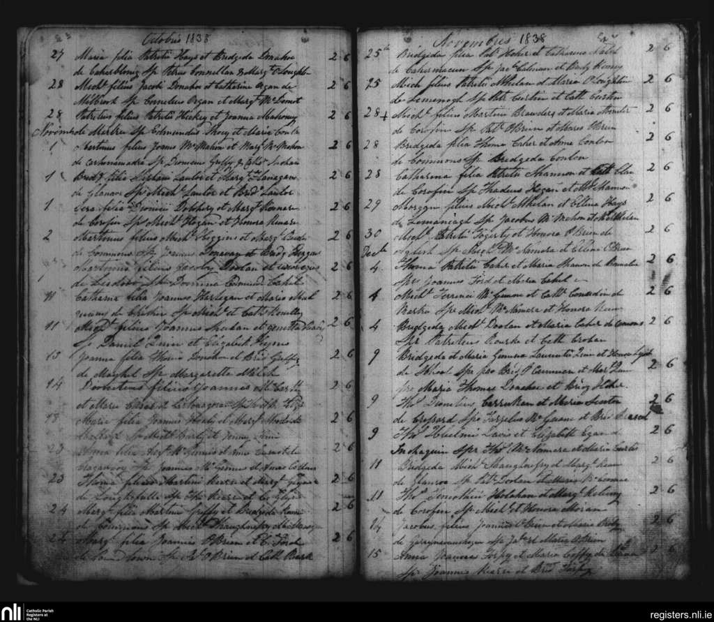 Rath; County of Clare; Diocese of Killaloe. Baptisms, Oct. 1838 to Dec. 1838