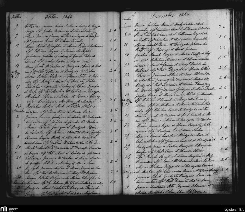 Rath; County of Clare; Diocese of Killaloe. Baptisms, Oct. 1840 to Jan. 1841