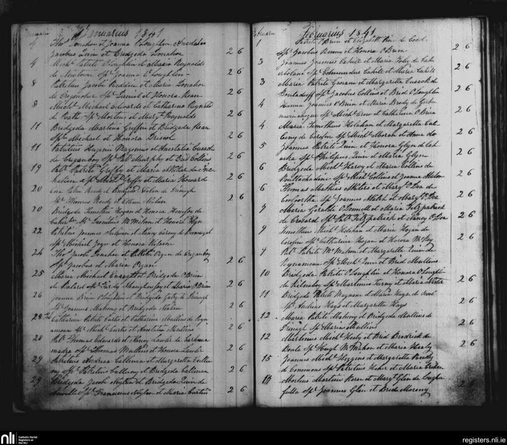 Rath; County of Clare; Diocese of Killaloe. Baptisms, Jan. 1841 to Feb. 1841