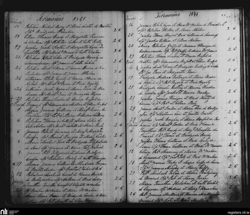 Rath; County of Clare; Diocese of Killaloe. Baptisms, Jan. 1841 to Apr. 1841