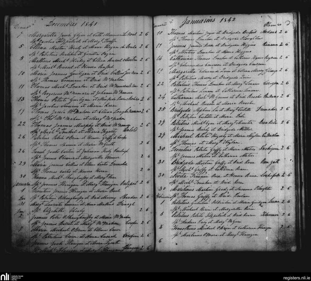 Rath; County of Clare; Diocese of Killaloe. Baptisms, Dec. 1841 to Feb. 1842