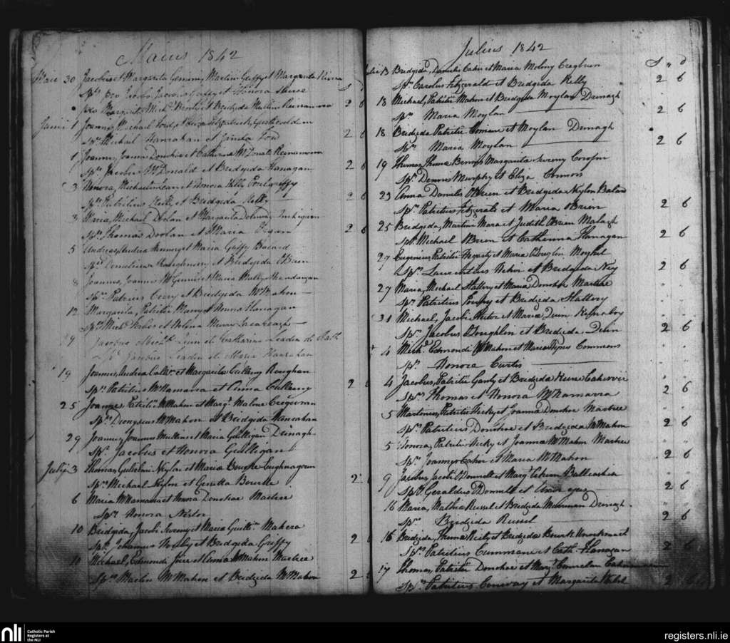 Rath; County of Clare; Diocese of Killaloe. Baptisms, May 1842 to Aug. 1842
