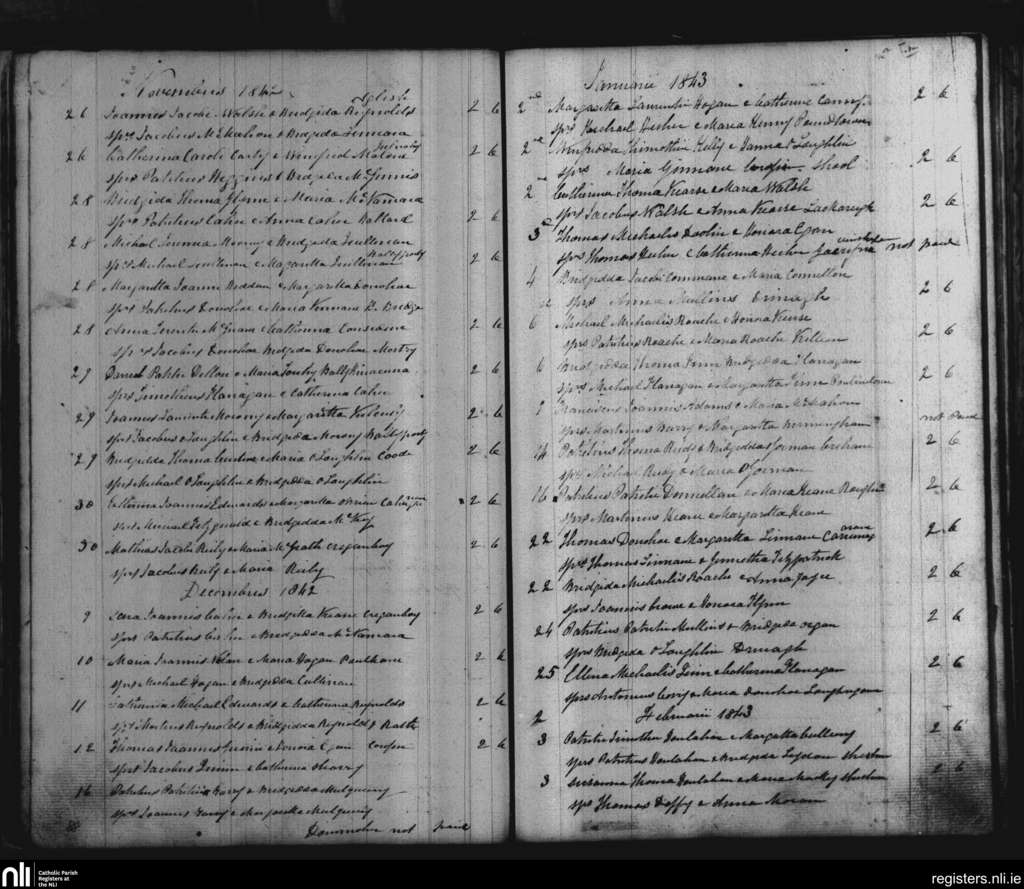 Rath; County of Clare; Diocese of Killaloe. Baptisms, Nov. 1842 to Feb. 1843