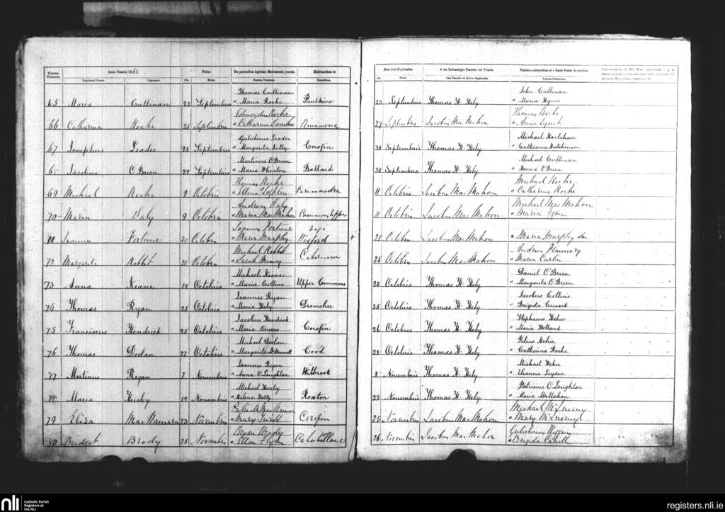 Rath; County of Clare; Diocese of Killaloe. Baptisms, Sep. 1863 to Nov. 1863