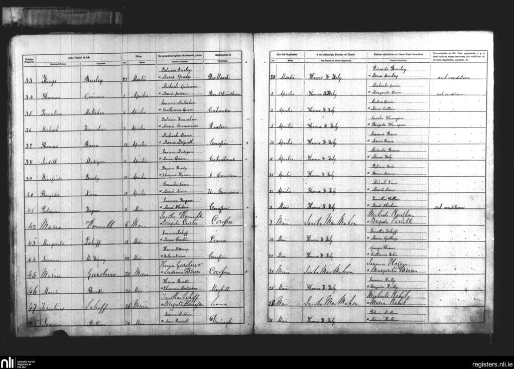 Rath; County of Clare; Diocese of Killaloe. Baptisms, Mar. 1866 to May 1866