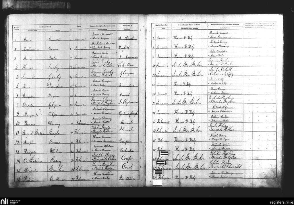 Rath; County of Clare; Diocese of Killaloe. Baptisms, Jan. 1867 to Feb. 1867
