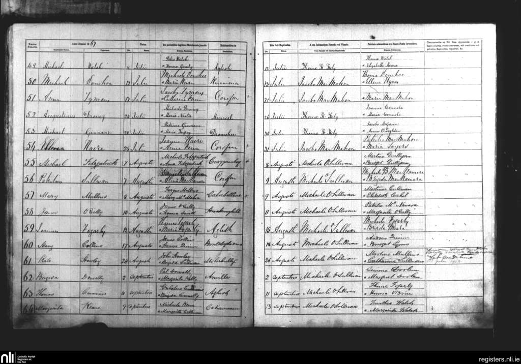 Rath; County of Clare; Diocese of Killaloe. Baptisms, July 1867 to Sep. 1867