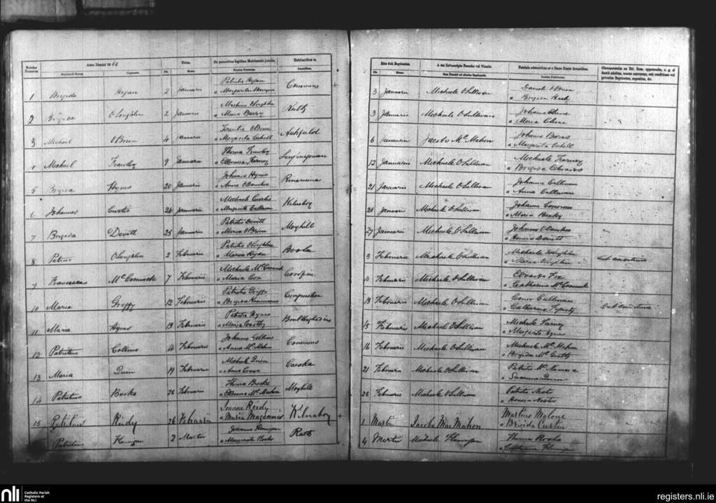 Rath; County of Clare; Diocese of Killaloe. Baptisms, Jan. 1868 to Mar. 1868